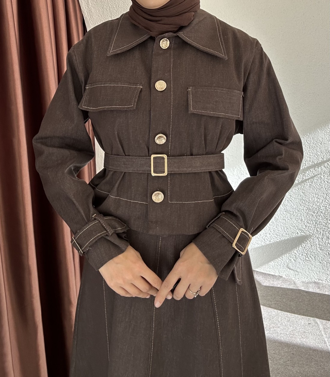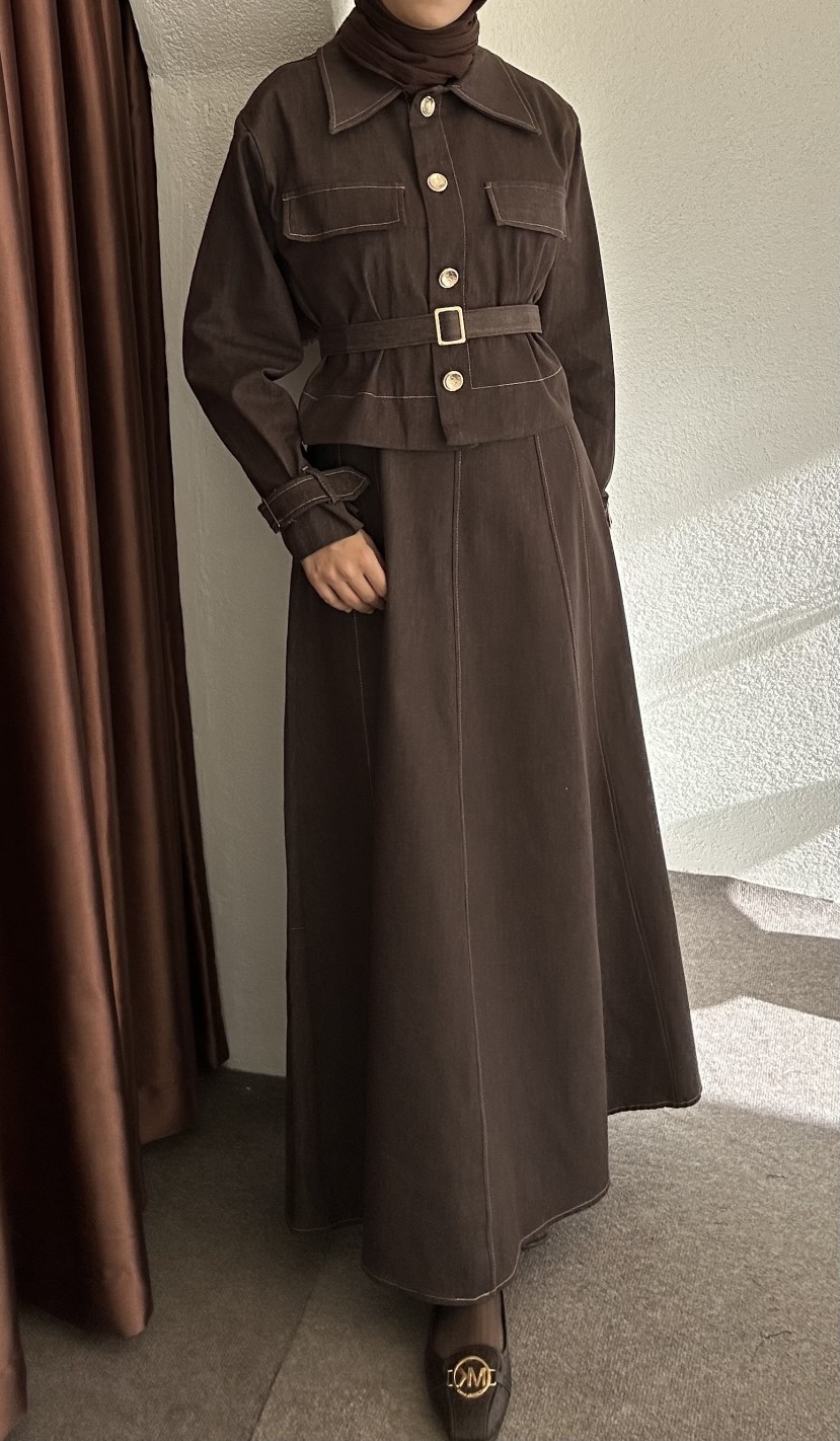 elbise içi jile dışı ceket ikili parçadır. Kemer dahildir