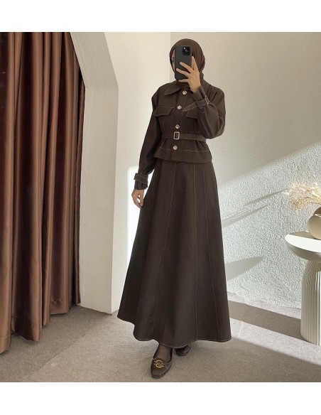 8122 kot elbise - Kahverengi
