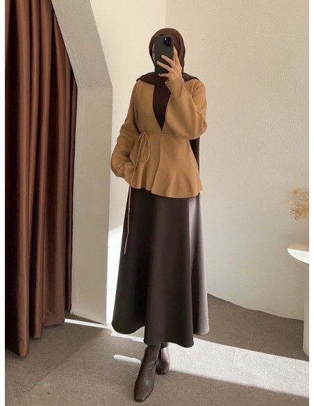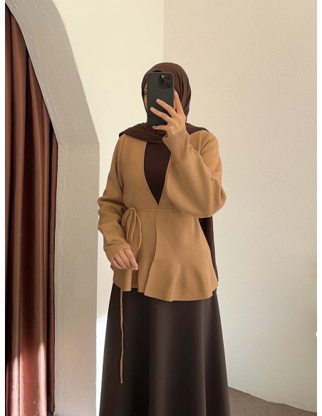 013 kuşaklı hırka - camel