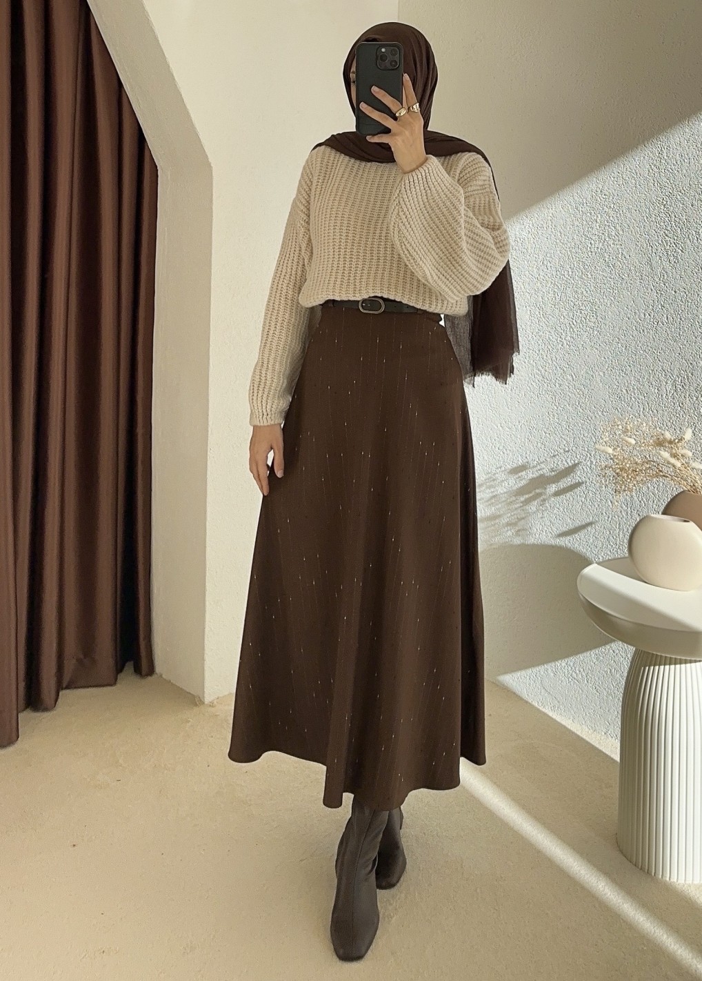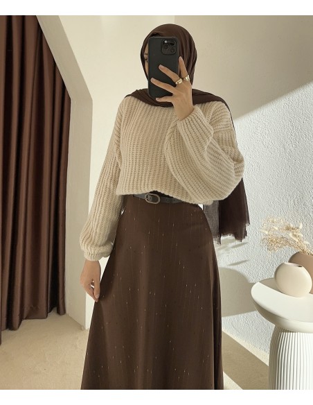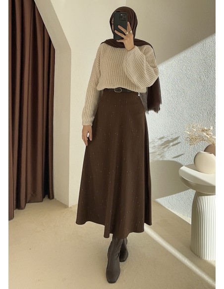 E371 kemerli etek - kahverengi
