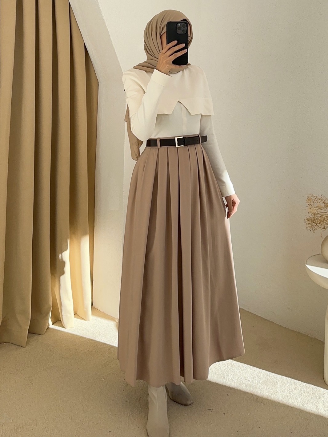 4891 kemerli tensel etek -Bej