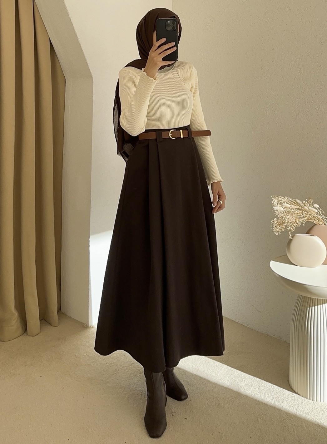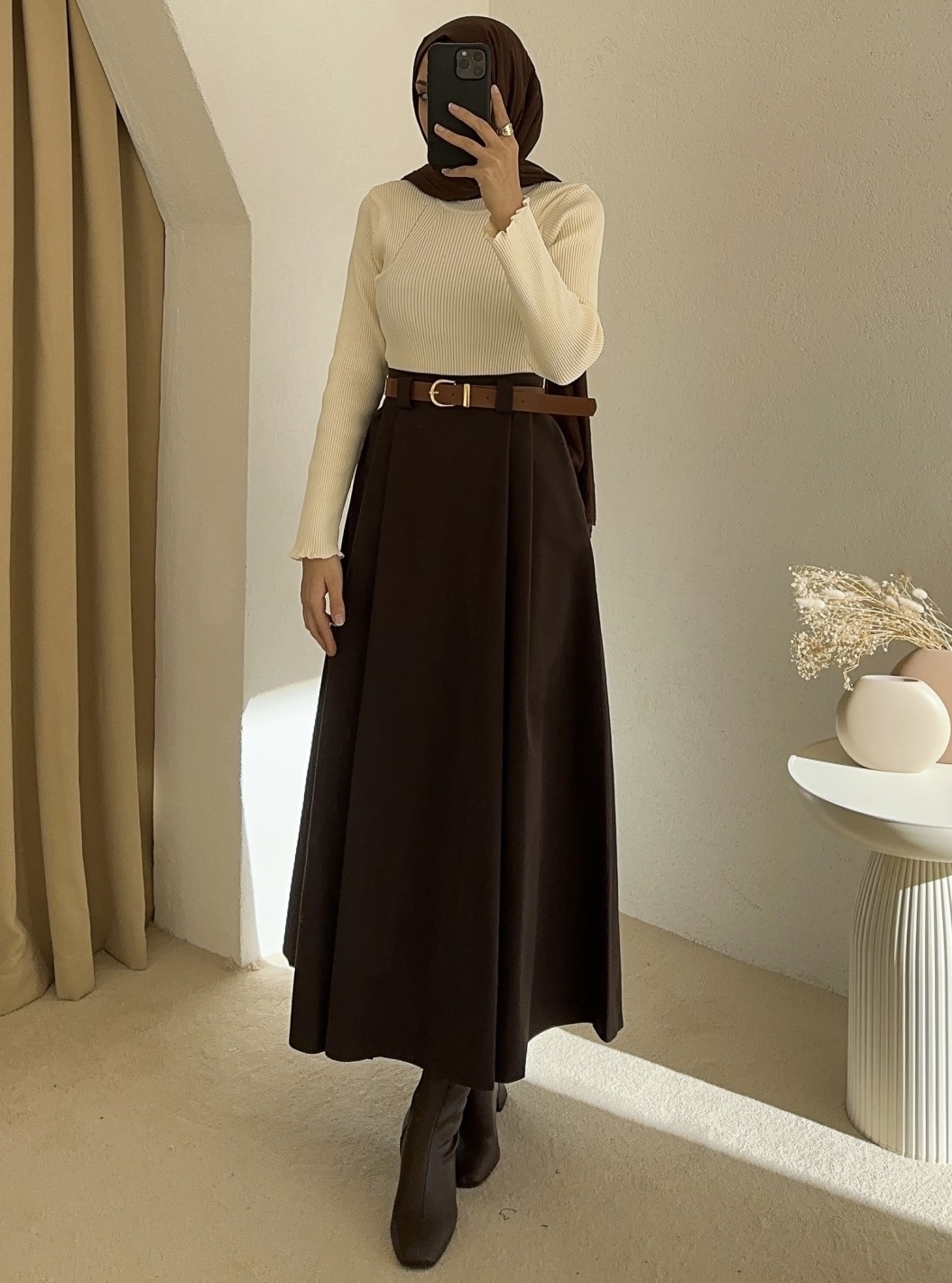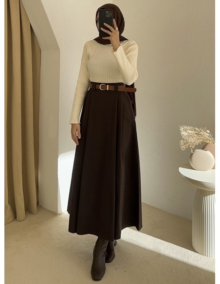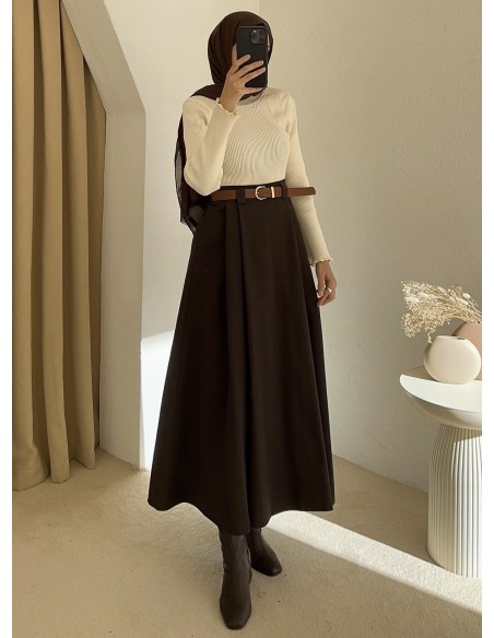 1034 kemerli etek - Kahverengi