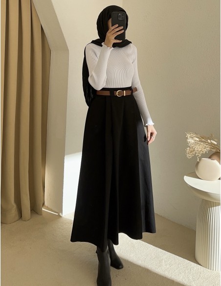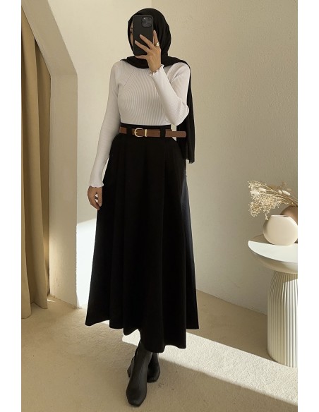 1034 kemerli etek - Siyah