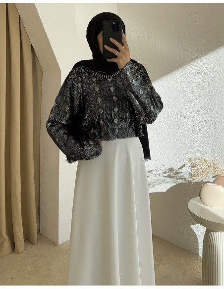 BS-207 simli crop kazak -Siyah
