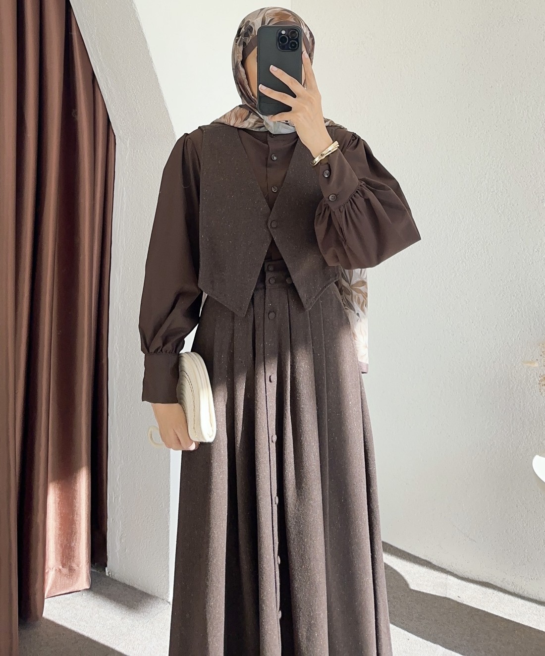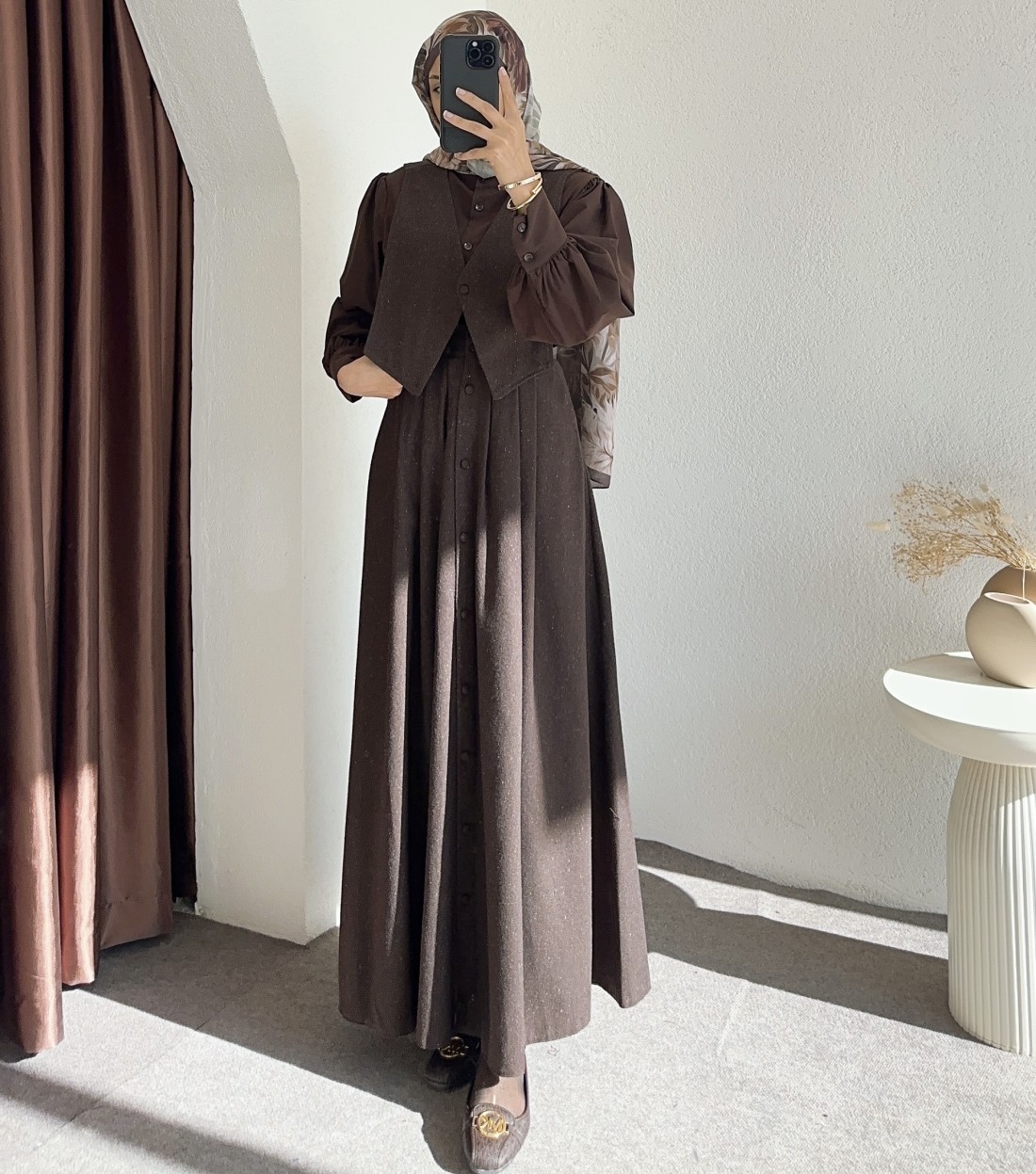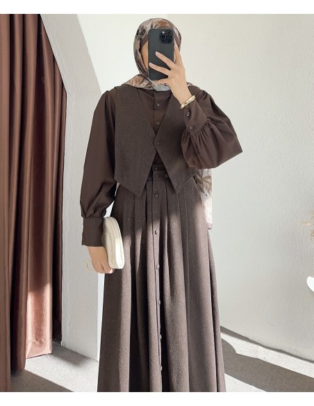 118 süveterli gömlek takım - Kahverengi