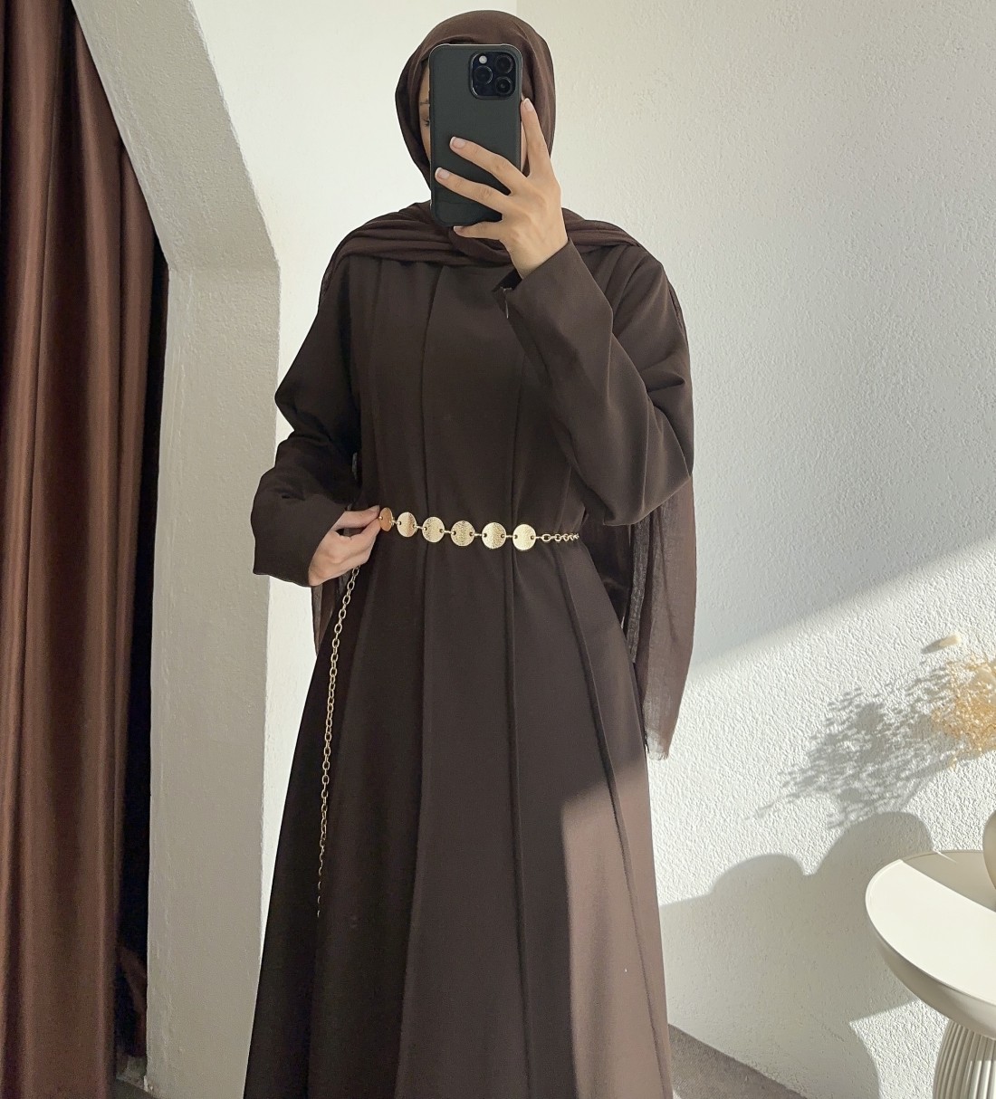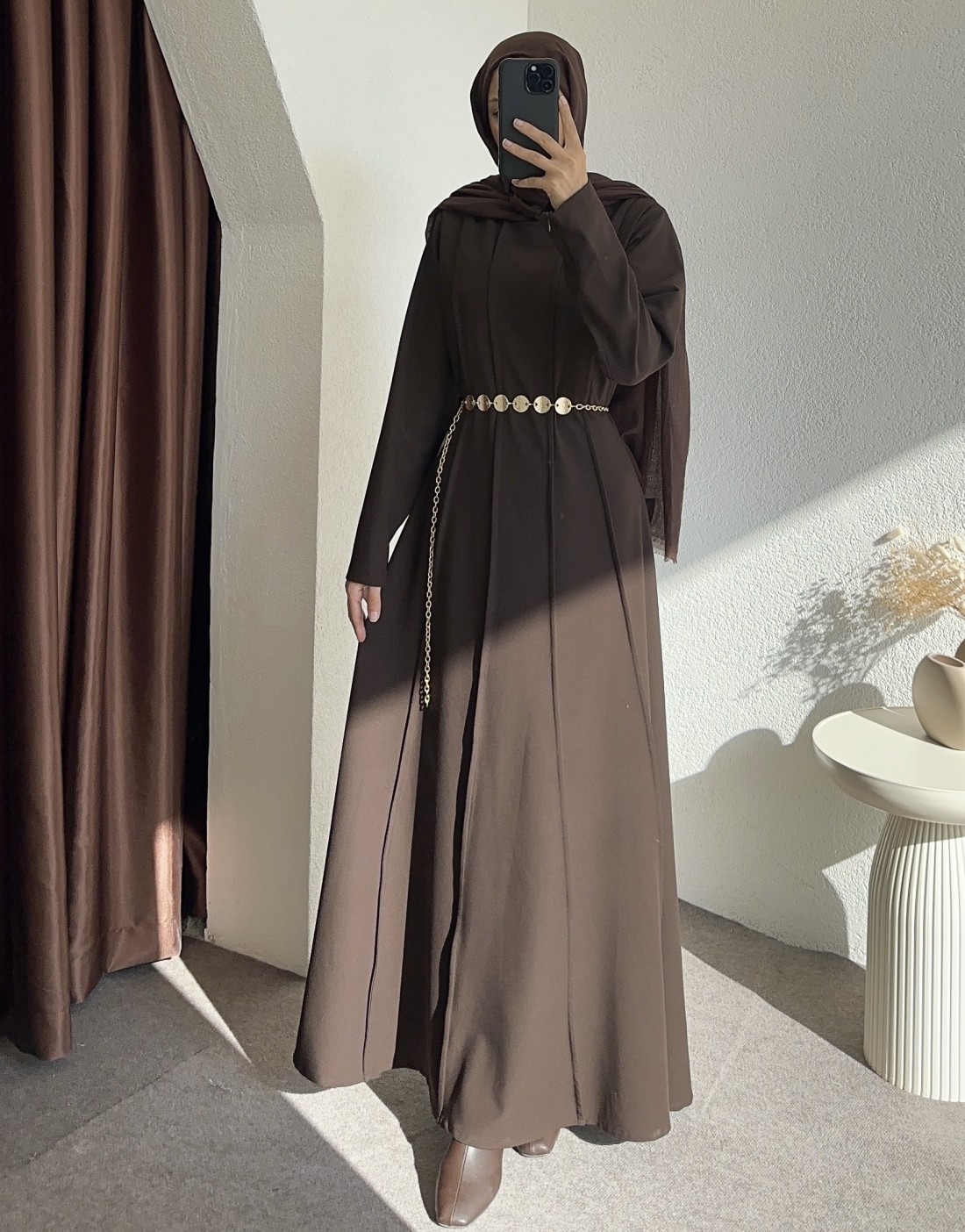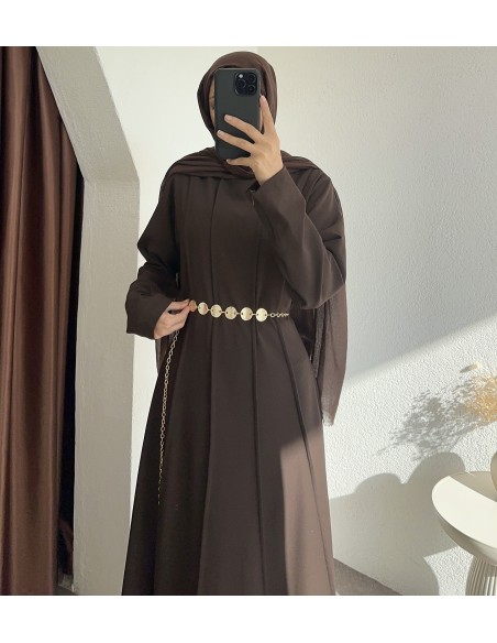 1579 kemer detay elbise - kahverengi