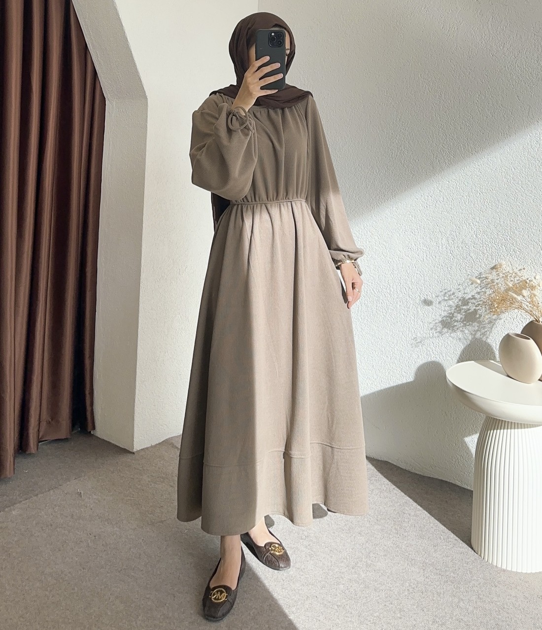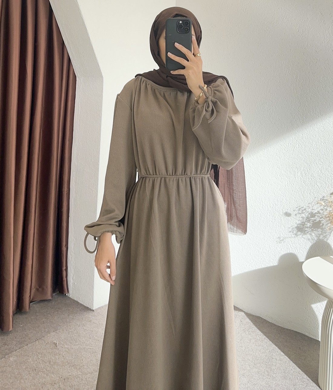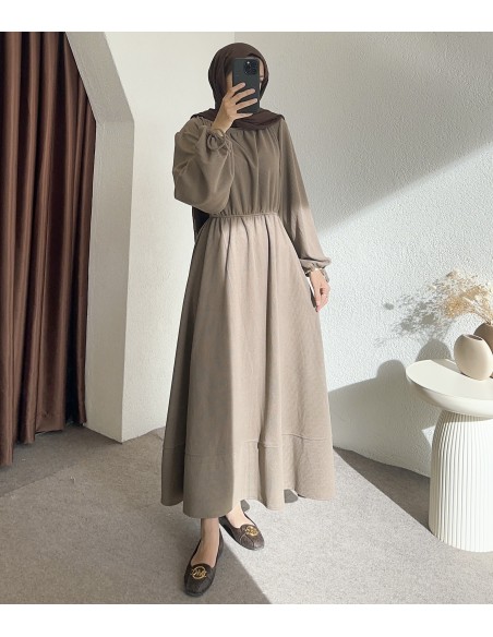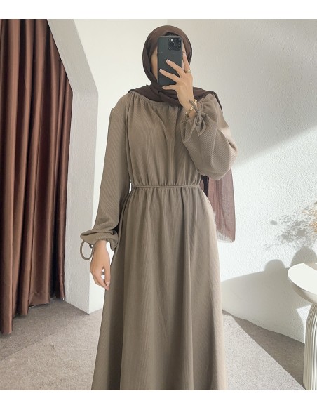 518 bel detay elbise -vizon