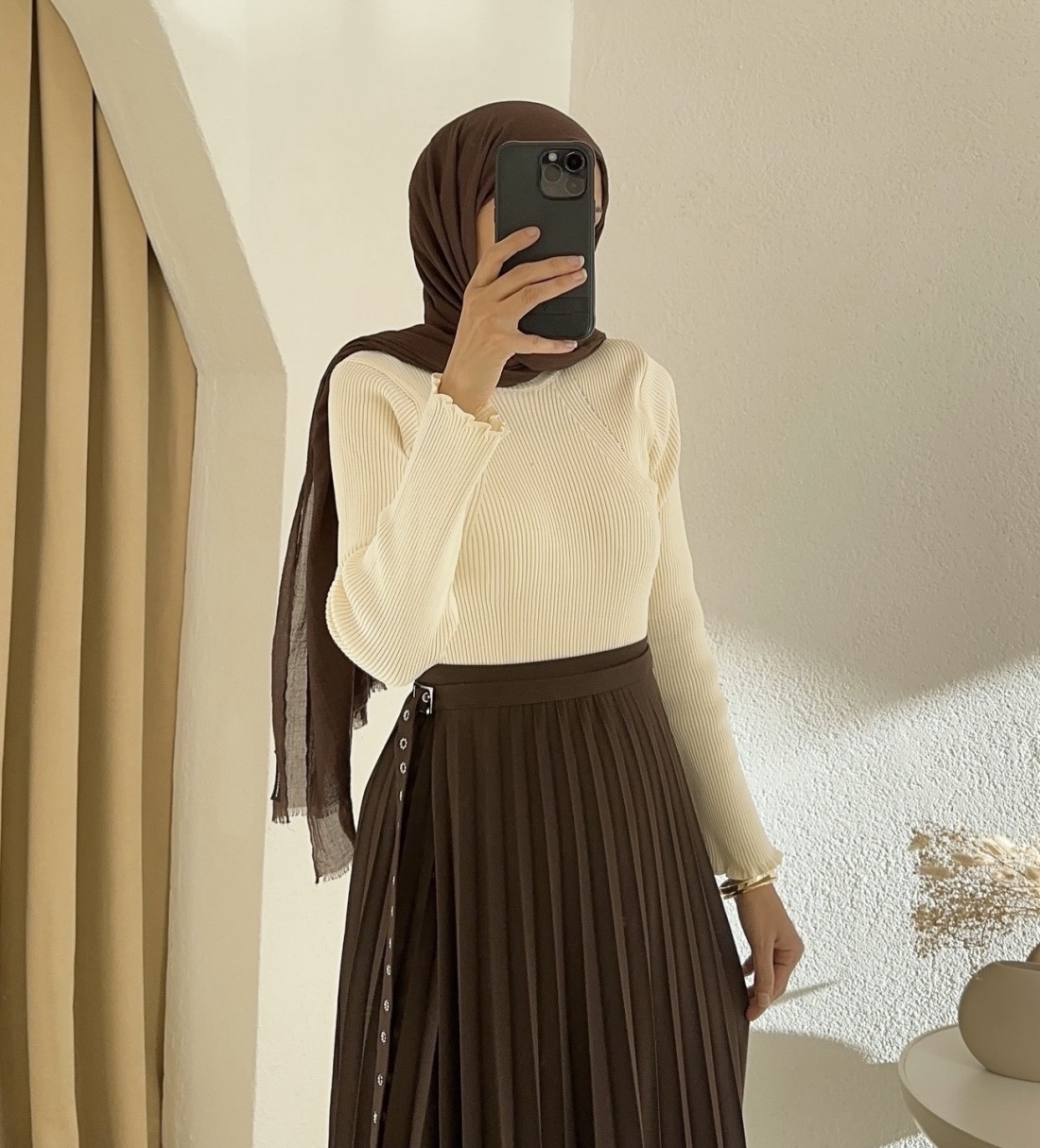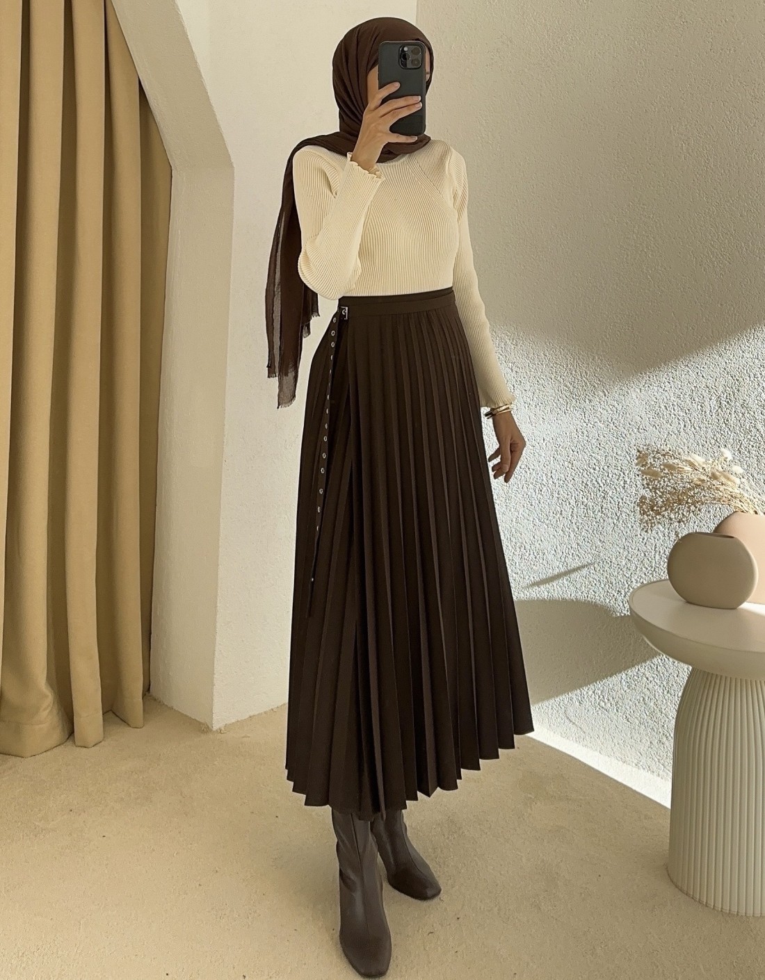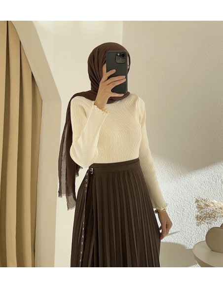 7249 anvelop pileli etek -Kahverengi