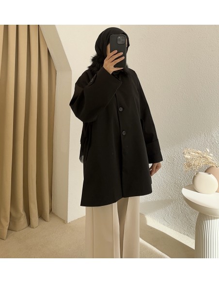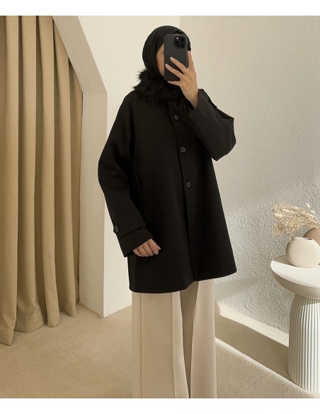 • Yaka Detayı: Şıklığı tamamlayan ve soğuktan koruyan yumuşak suni kürk yaka.