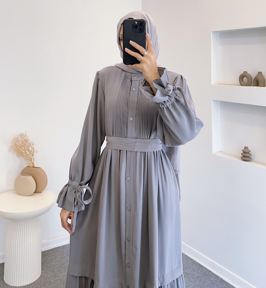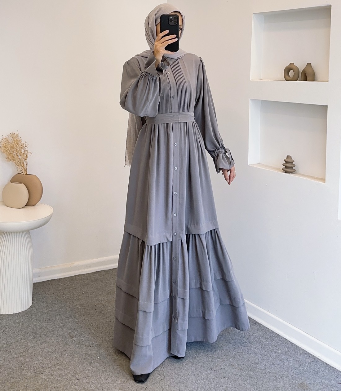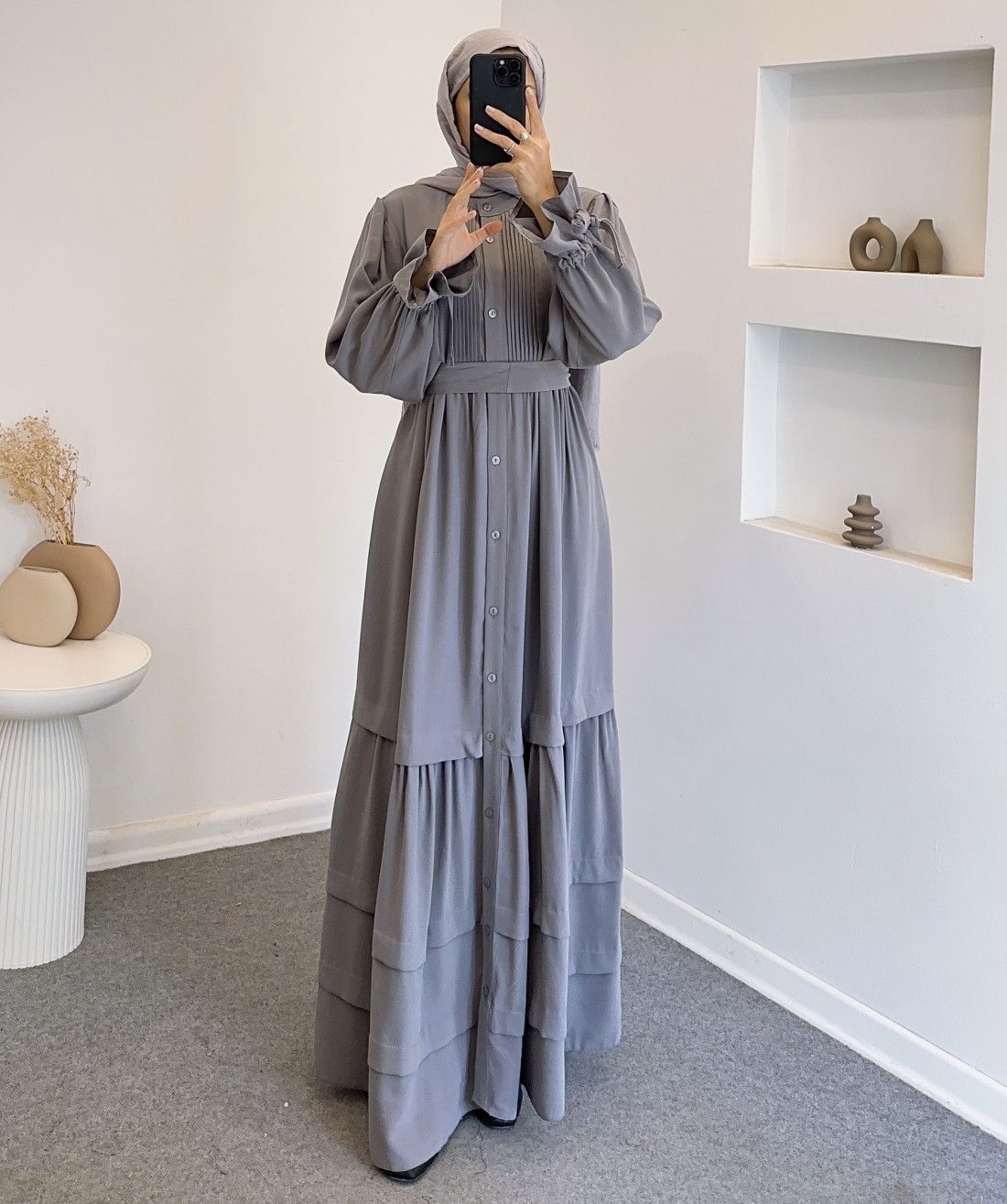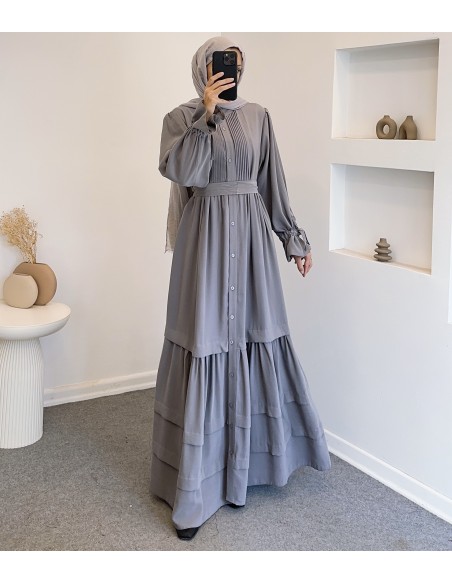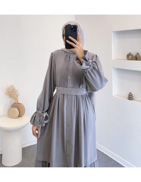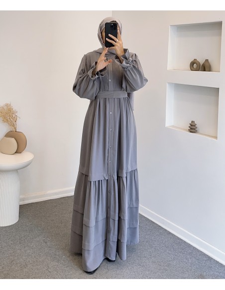 076 robalı elbise - gri