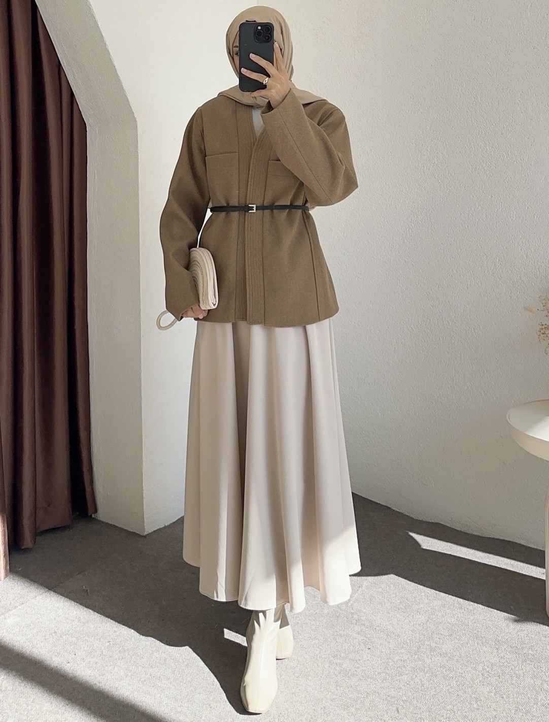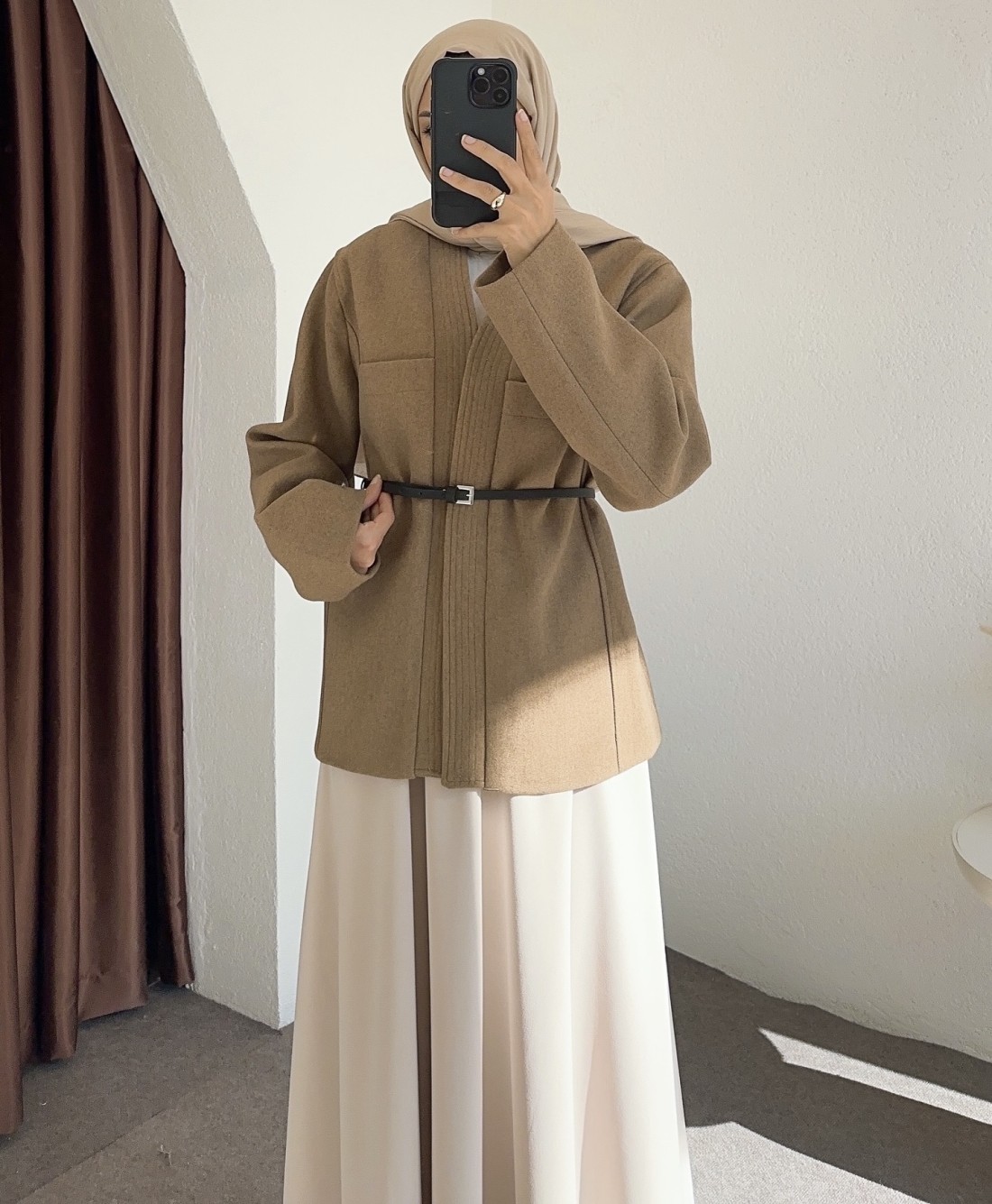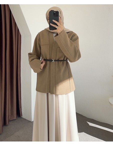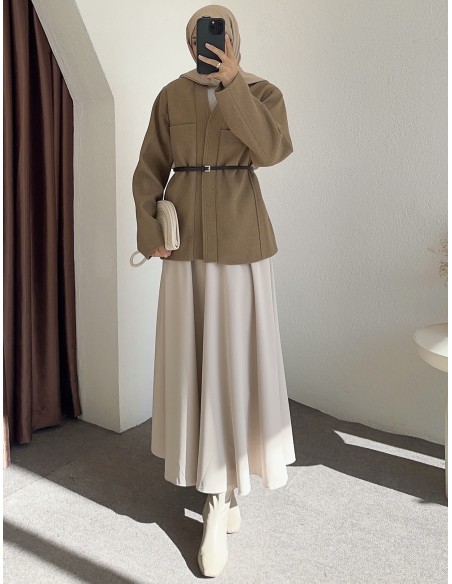 25027 kemerli ceket - Vizon