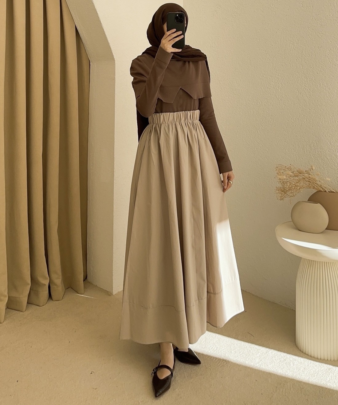 D27321 poplin etek - Bej
