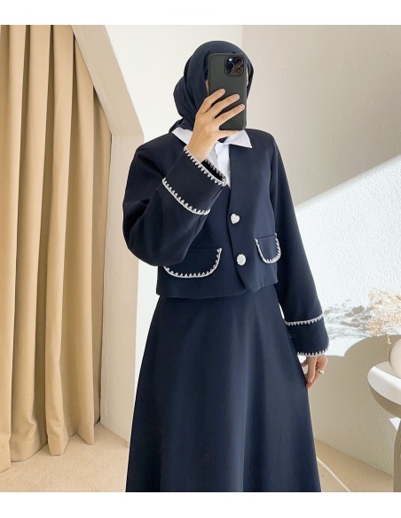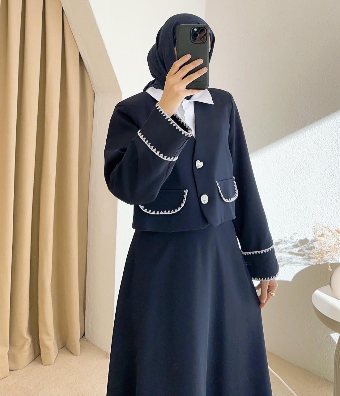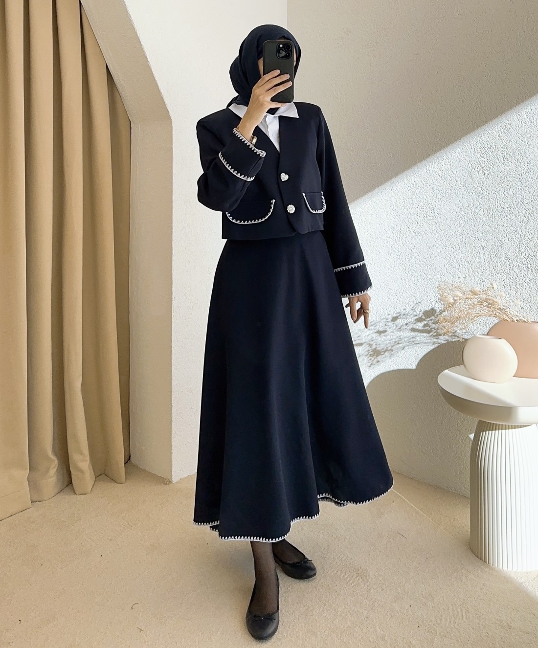• Kumaş Türü: Terletme yapmayan, nefes alabilen ve dökümlü yapısıyla bilinen double krep kumaştır