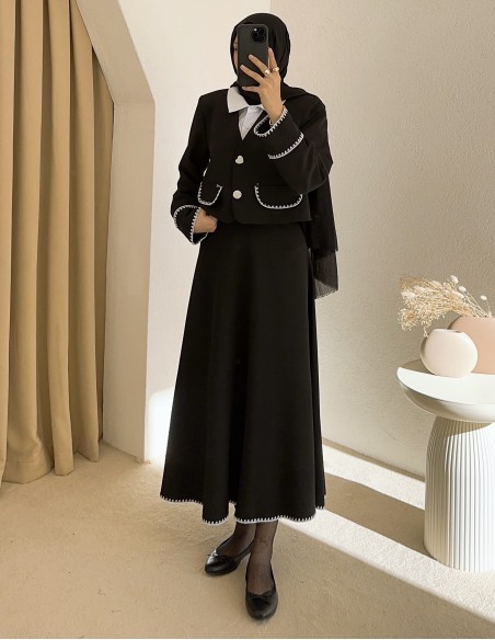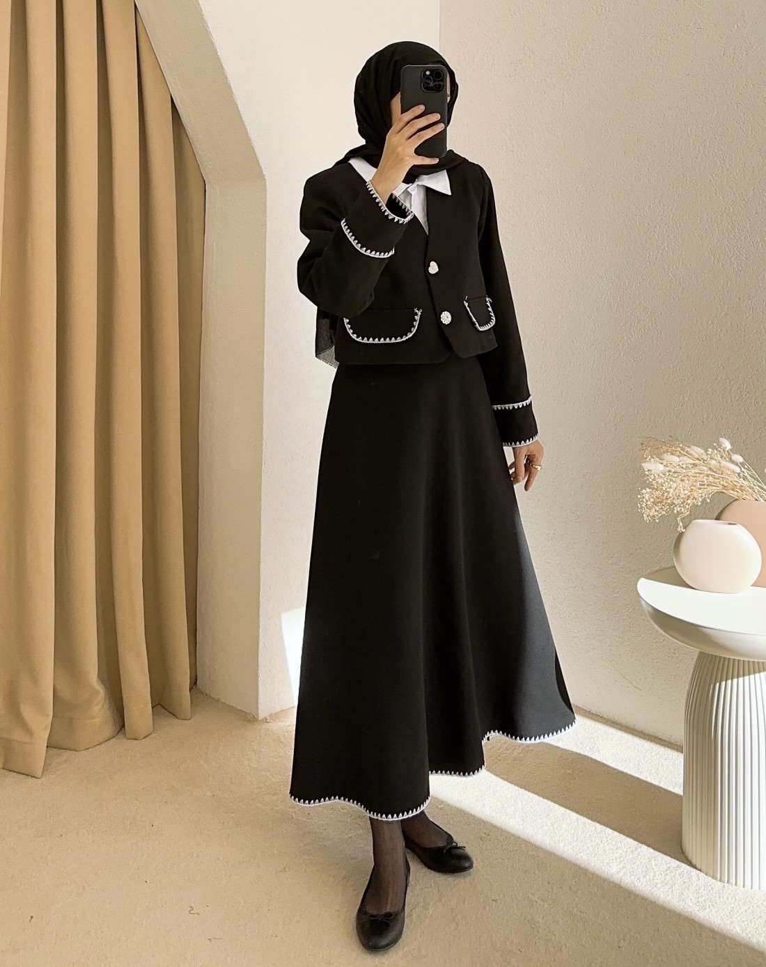 • Kumaş Türü: Terletme yapmayan, nefes alabilen ve dökümlü yapısıyla bilinen double krep kumaştır