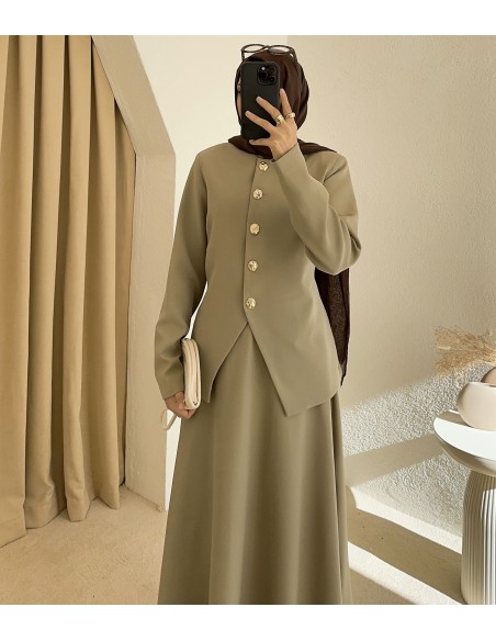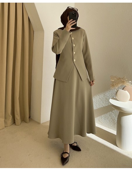 • Kumaş Türü: Terletme yapmayan, nefes alabilen ve dökümlü yapısıyla bilinen krep kumaştır. Ceket içi astarlıdır