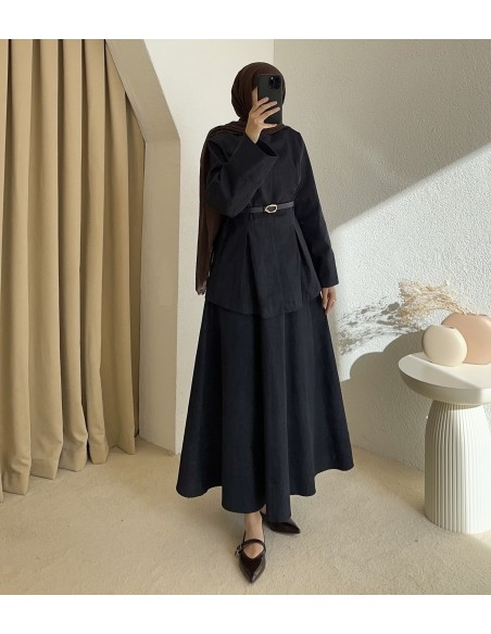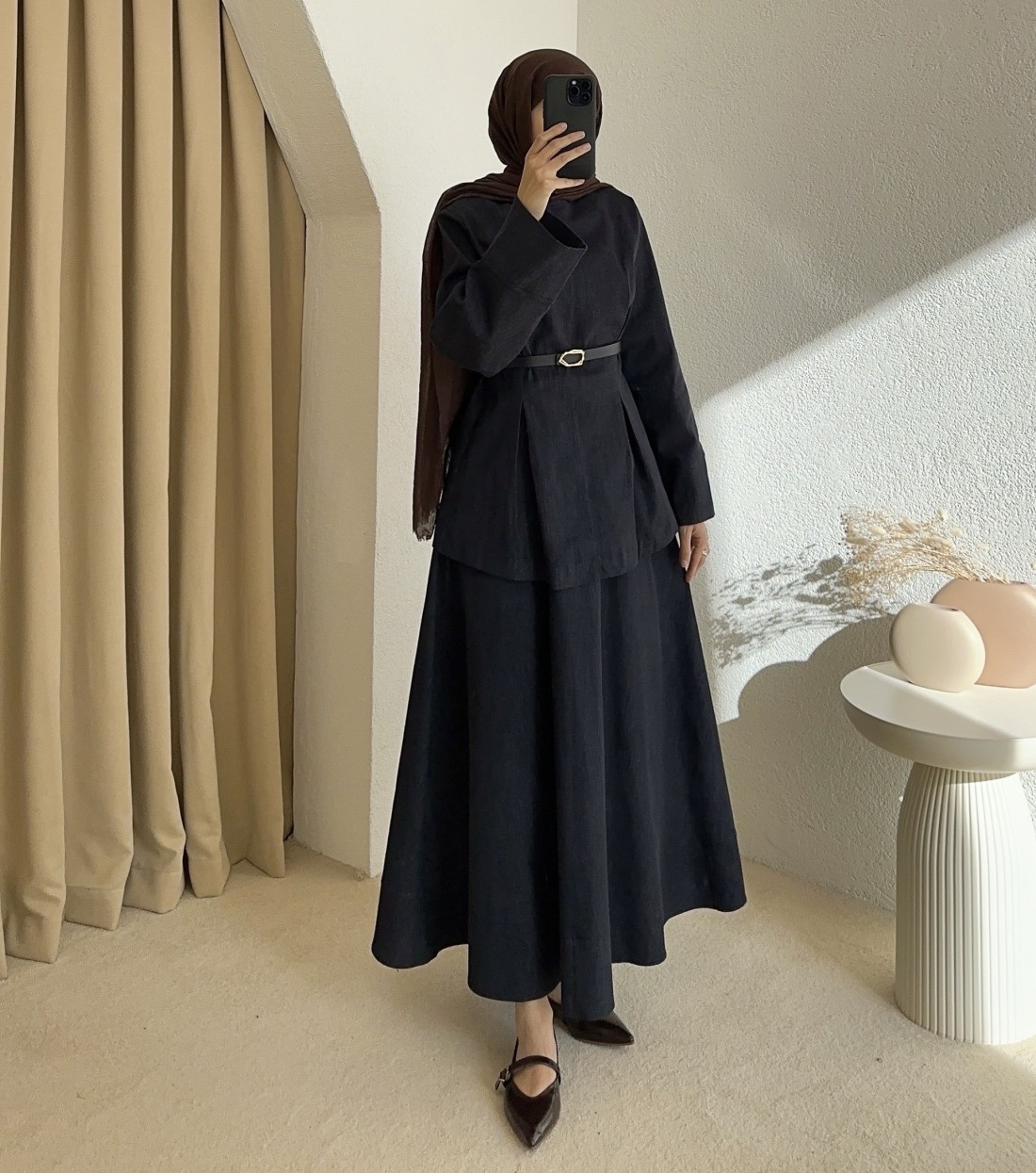 Ürün kot kumaştan üretildi. Üst boyu 75 cm alt boyu 95 cm’dir