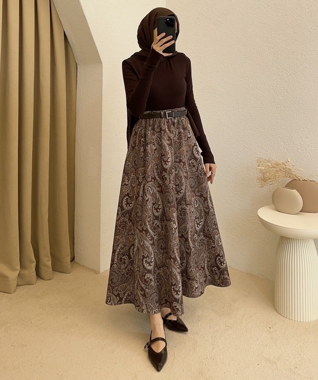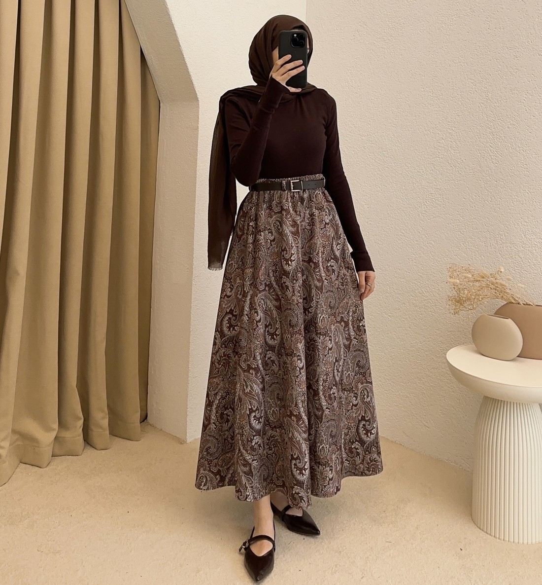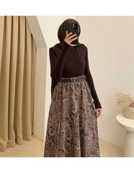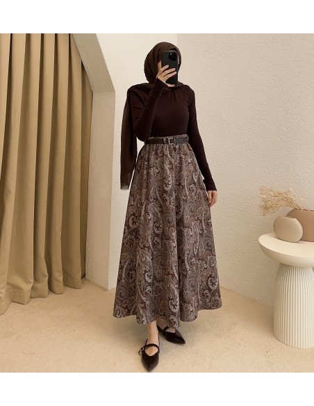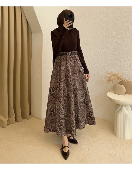 794 etnik desen etek - kahverengi