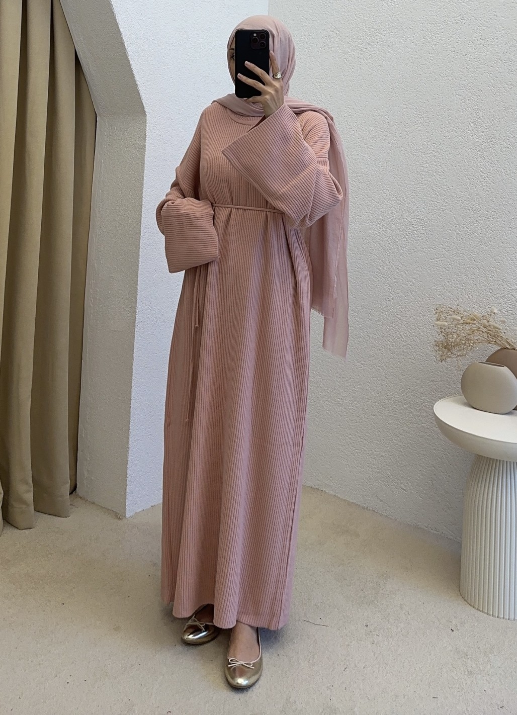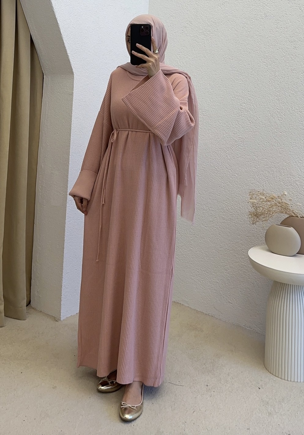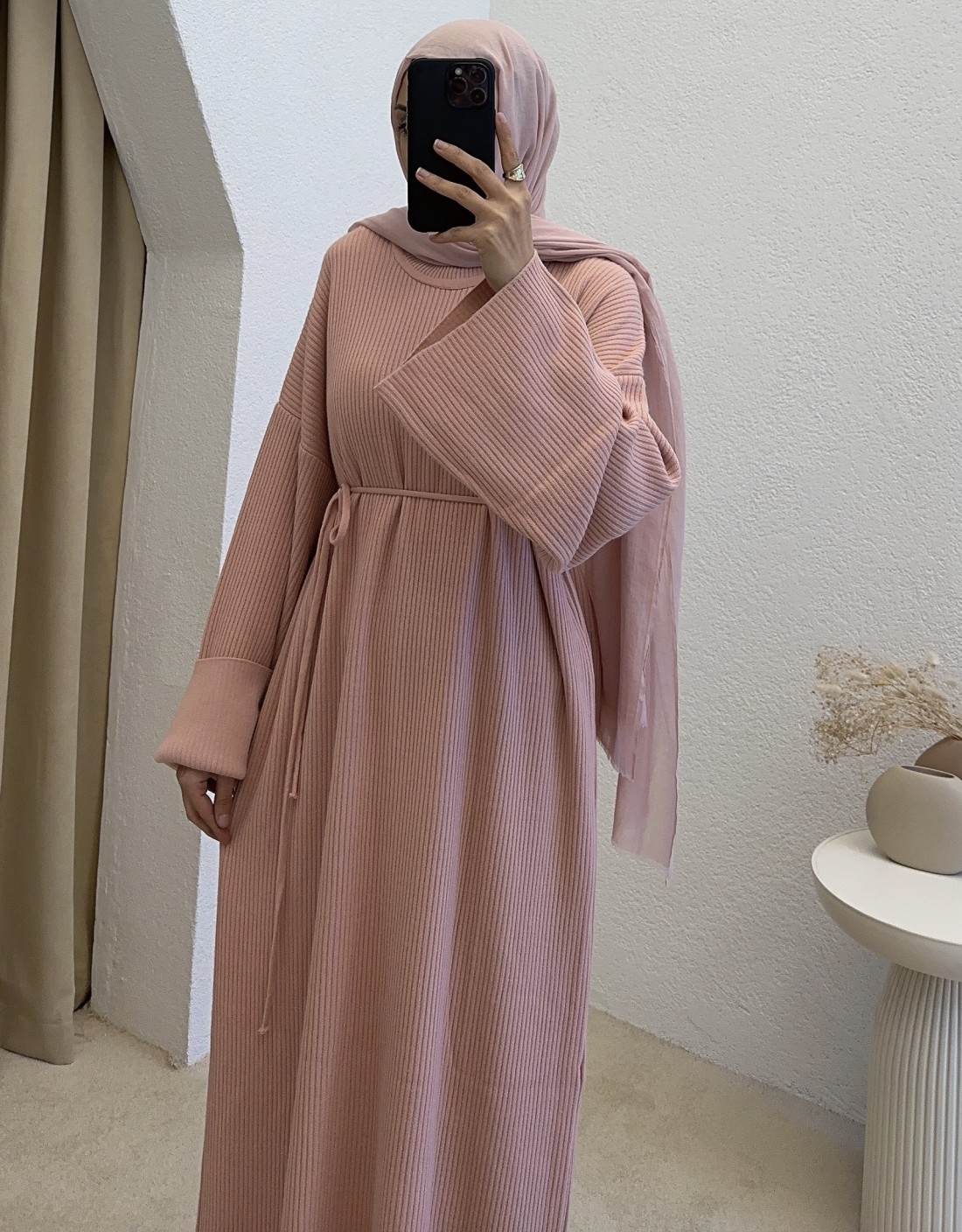 2900 ipli triko elbise - pembe