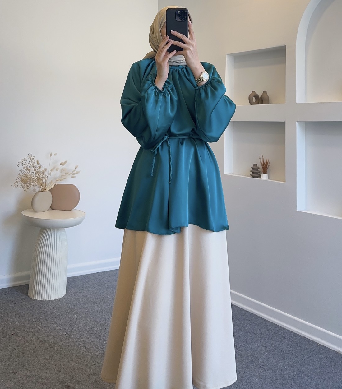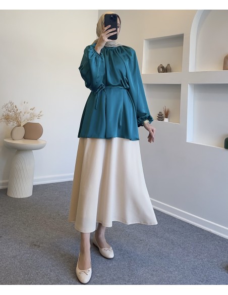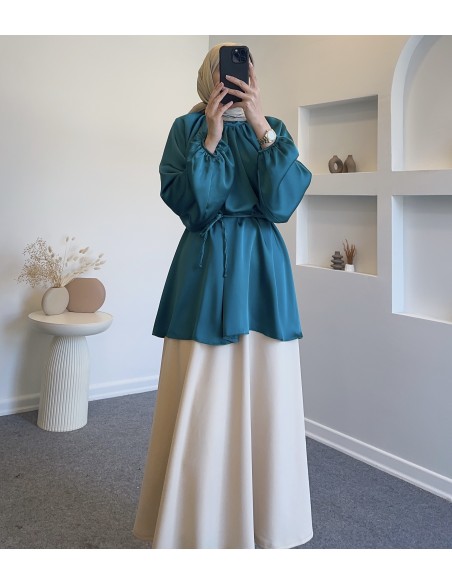 0105 saten tunik - petrol yeşil