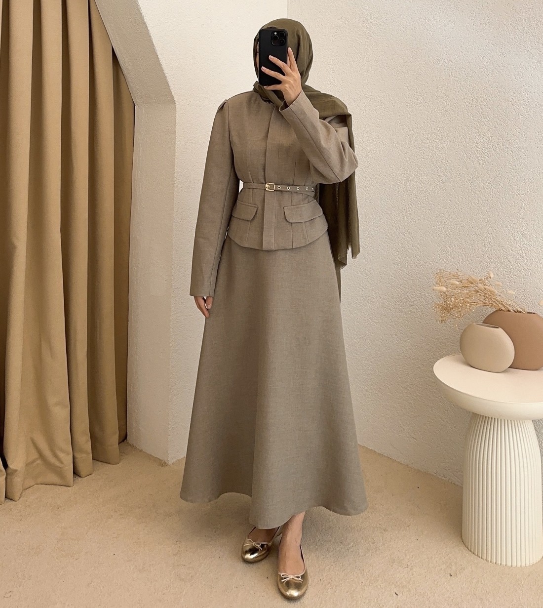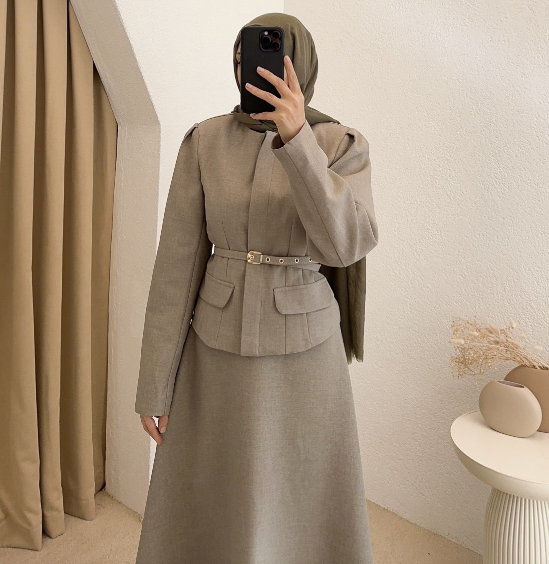 ceket içi astarlı ( Kemer dahil ) etek boyu ; 95 cm
