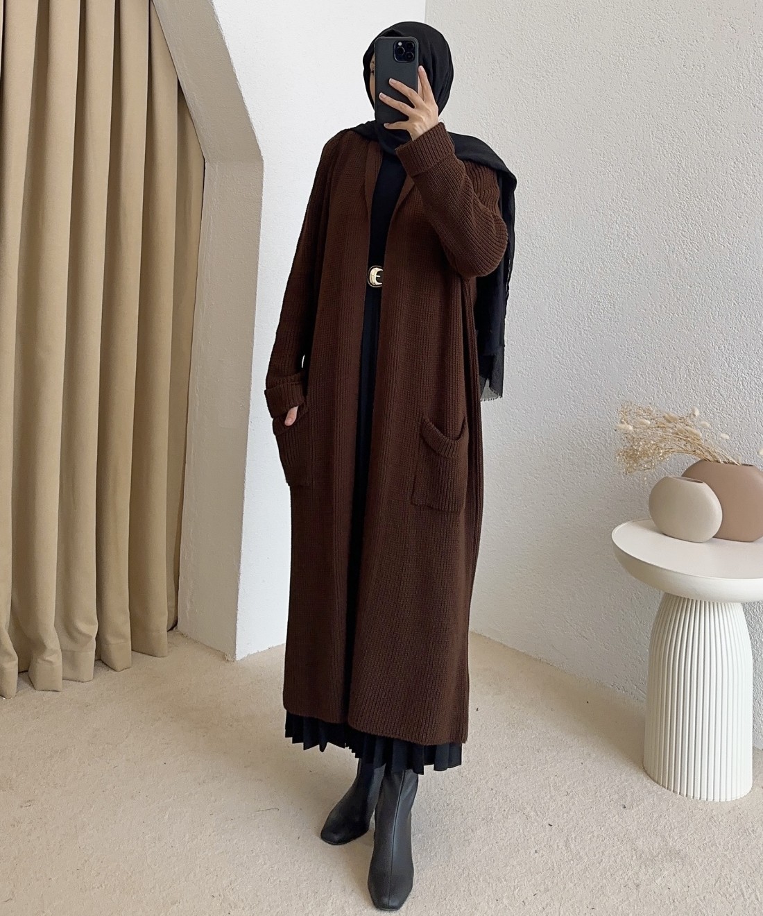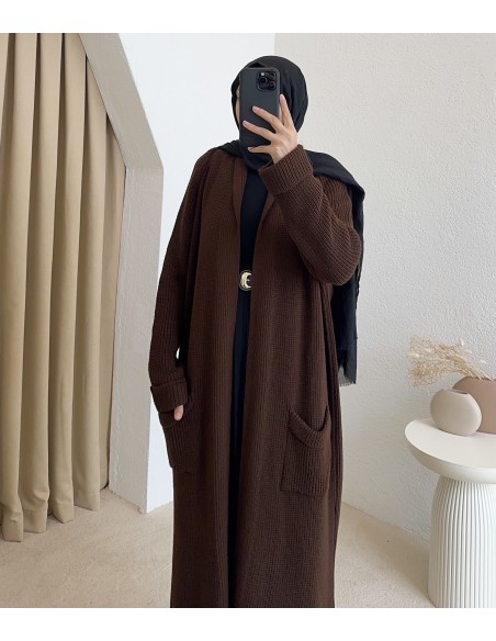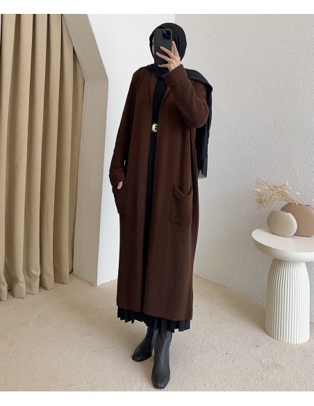 4747 uzun triko hırka - Kahverengi