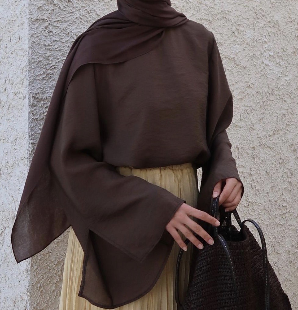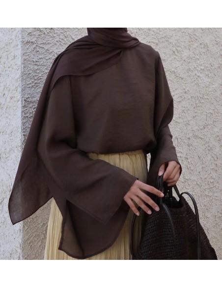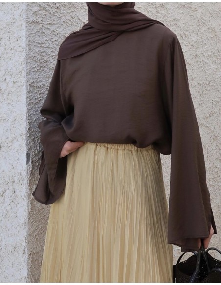 3161 İpek cupra Lily bluz Çikolata kahve