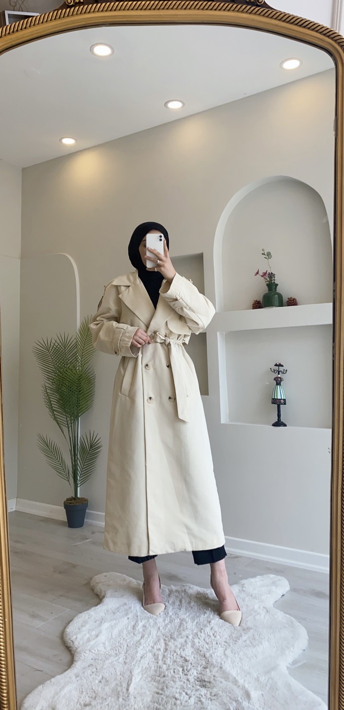 Tam boy trençkotumuz içi astarlıdır iki yandan cepli beli kuşaklıdır önden düğmeli tam kalıptır kendi bedeninizi tercih edebilirsiniz
