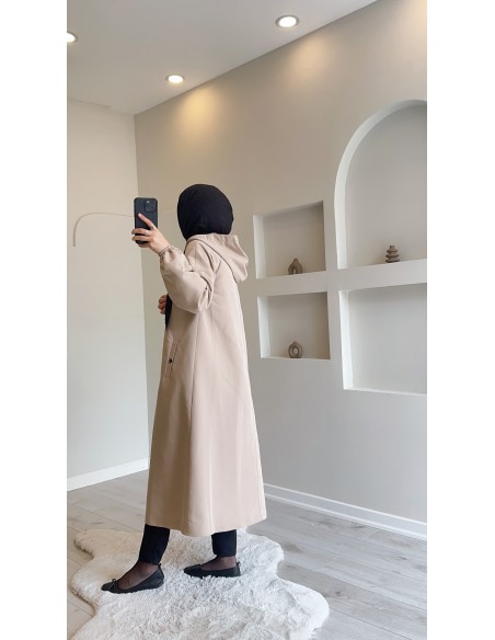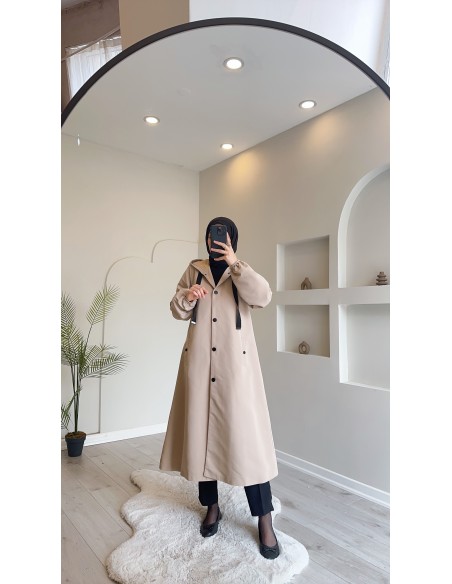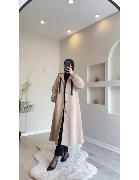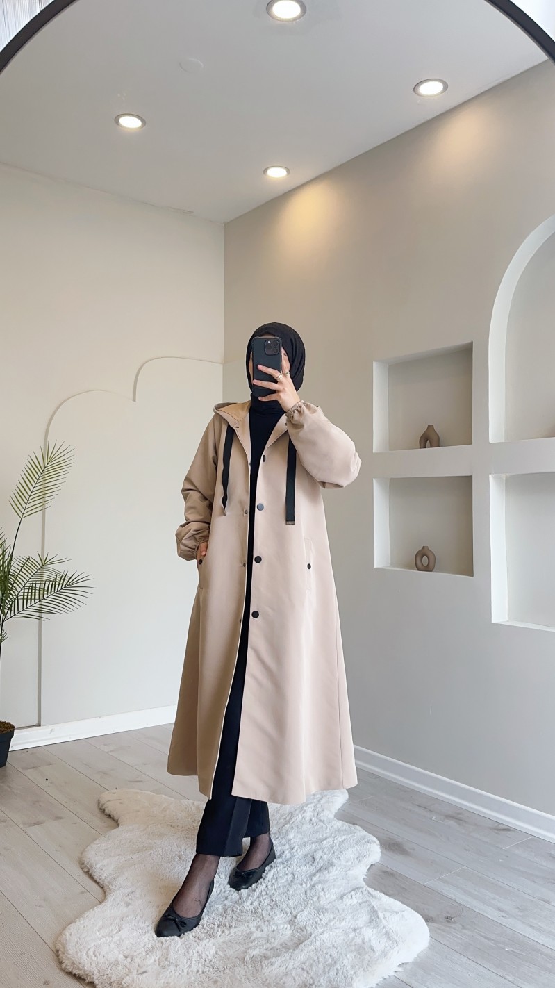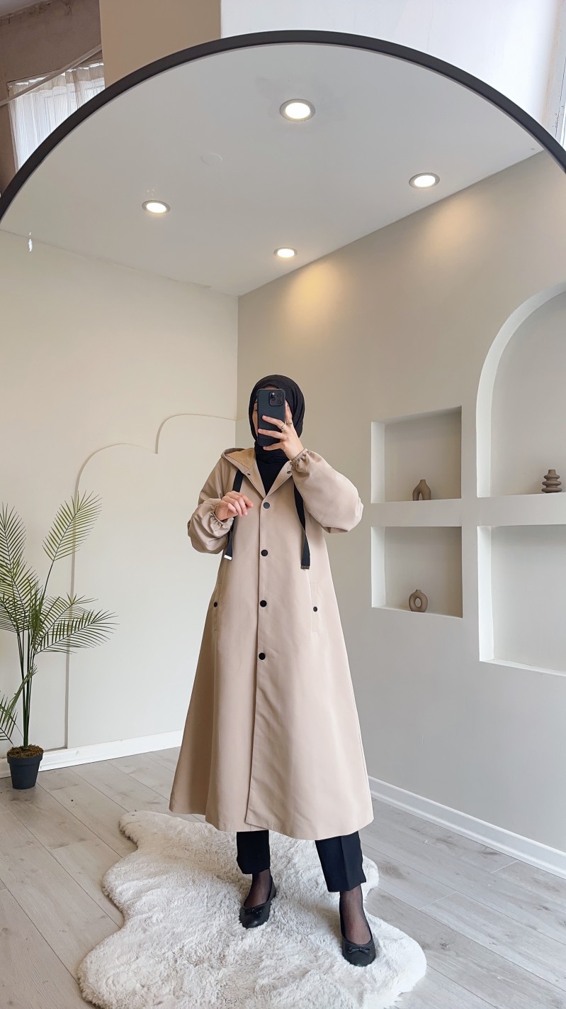 1736 Kapşonlu Düğmeli Trençkot Taş