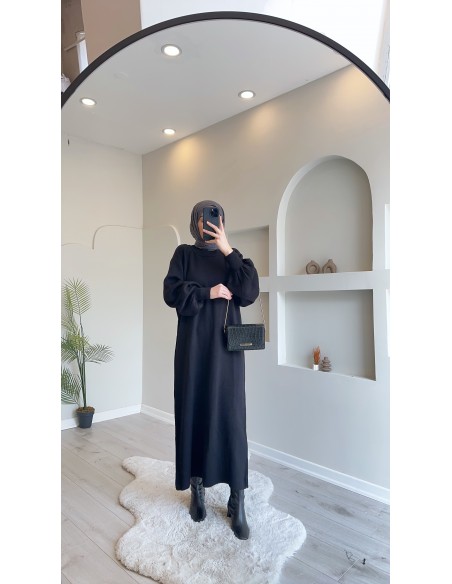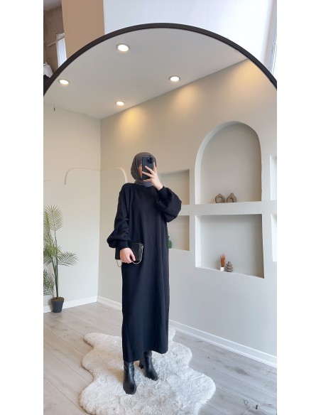 2740 Balon Kol Salaş Triko Elbise Siyah