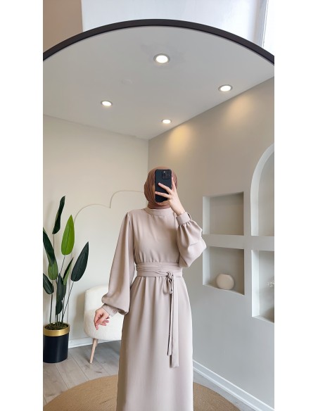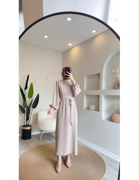Krep kumaştan üretilen tam kalıp şura elbisemiz belden kuşaklıdır boy 140 cm’dir (2/3 cm yanılma payı vardır)