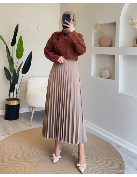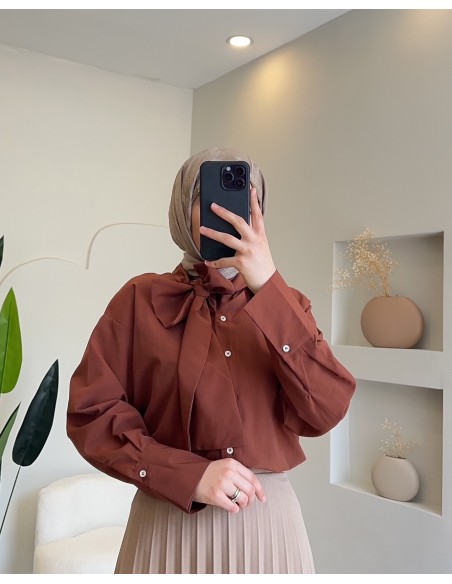 Hy24834 Fular Yaka Gömlek Acı Kahve