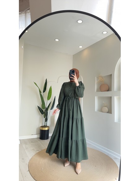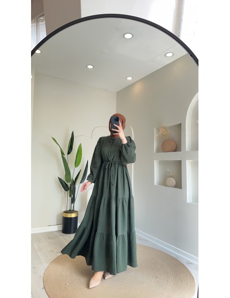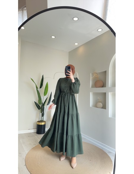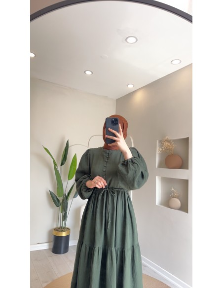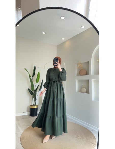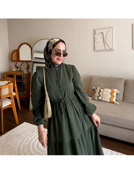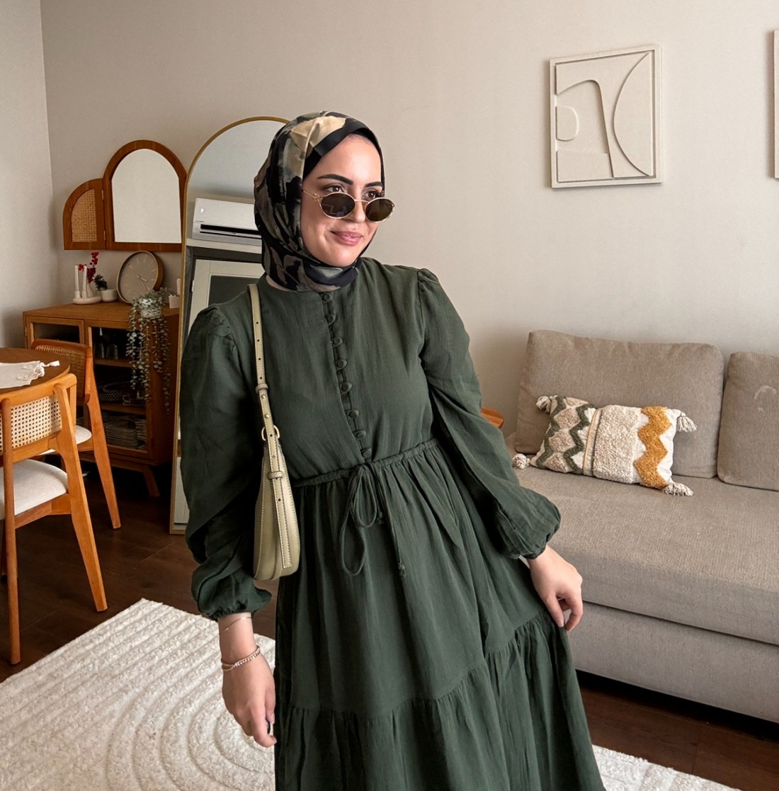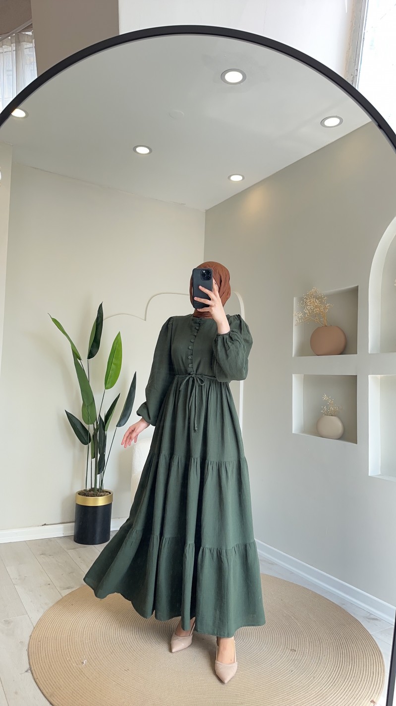 Hy24653 Müslin Düğmeli Elbise Kına Yeşili