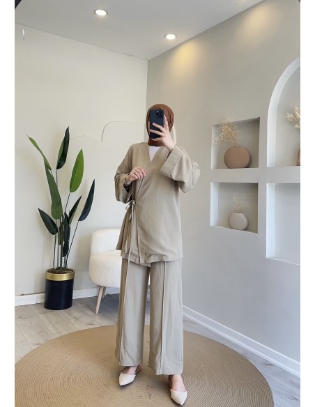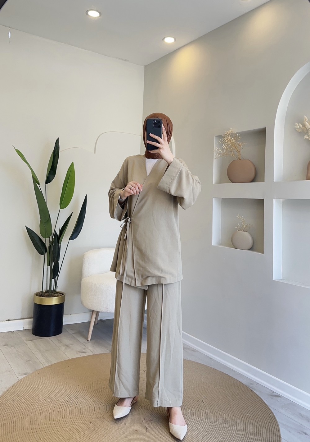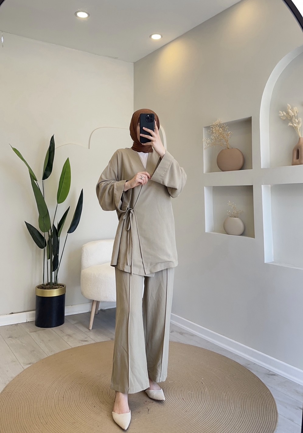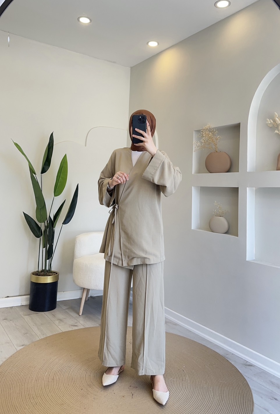 403 Yandan Bağlamalı Pantolonlu Takım Taş