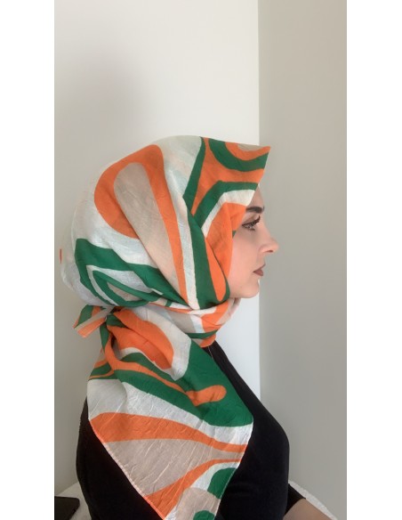 Moda Kaşmir Dalga Desen Bambu Eşarp - OranjYeşil