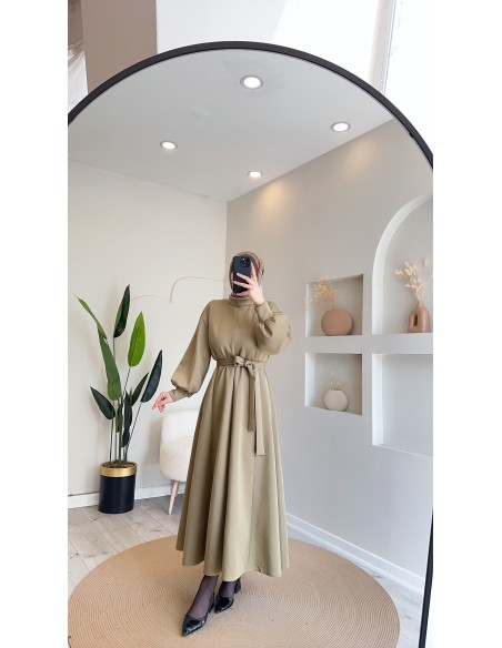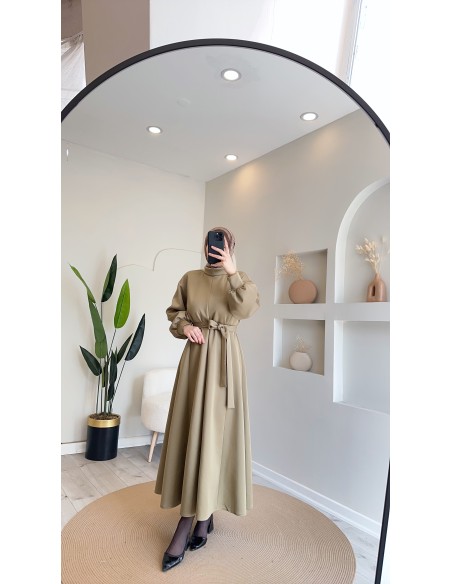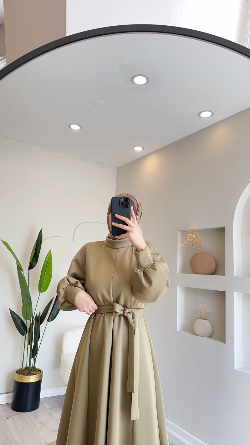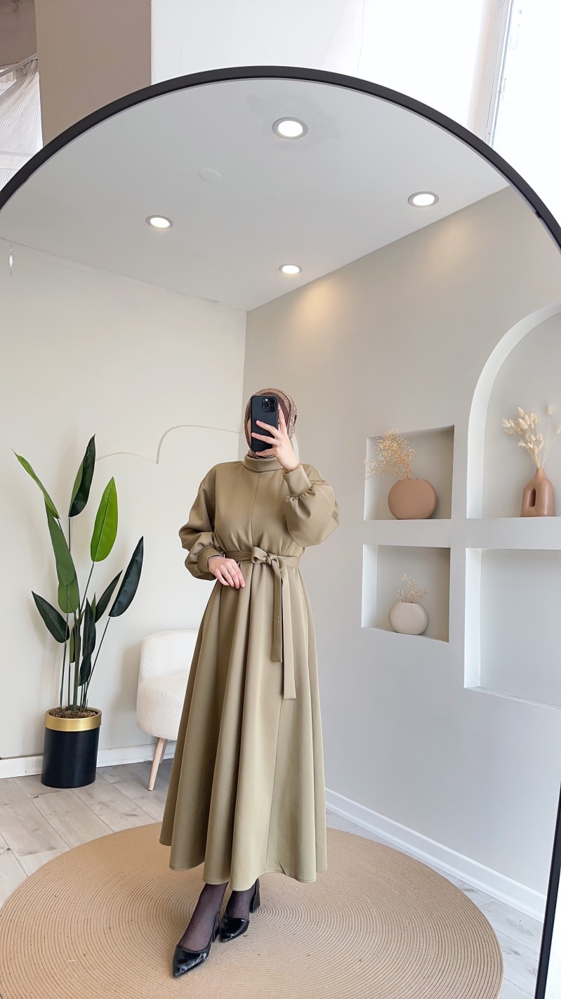 2907 scuba Kloş elbise Oliv yeşil