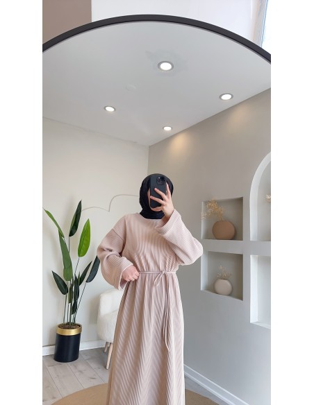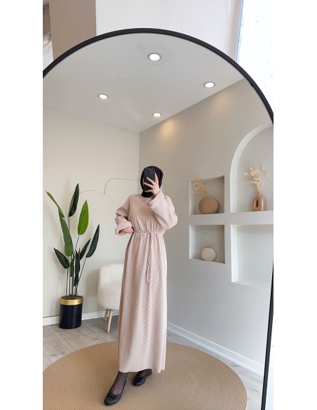 61512 Fitilli Örme Elbise - taş
